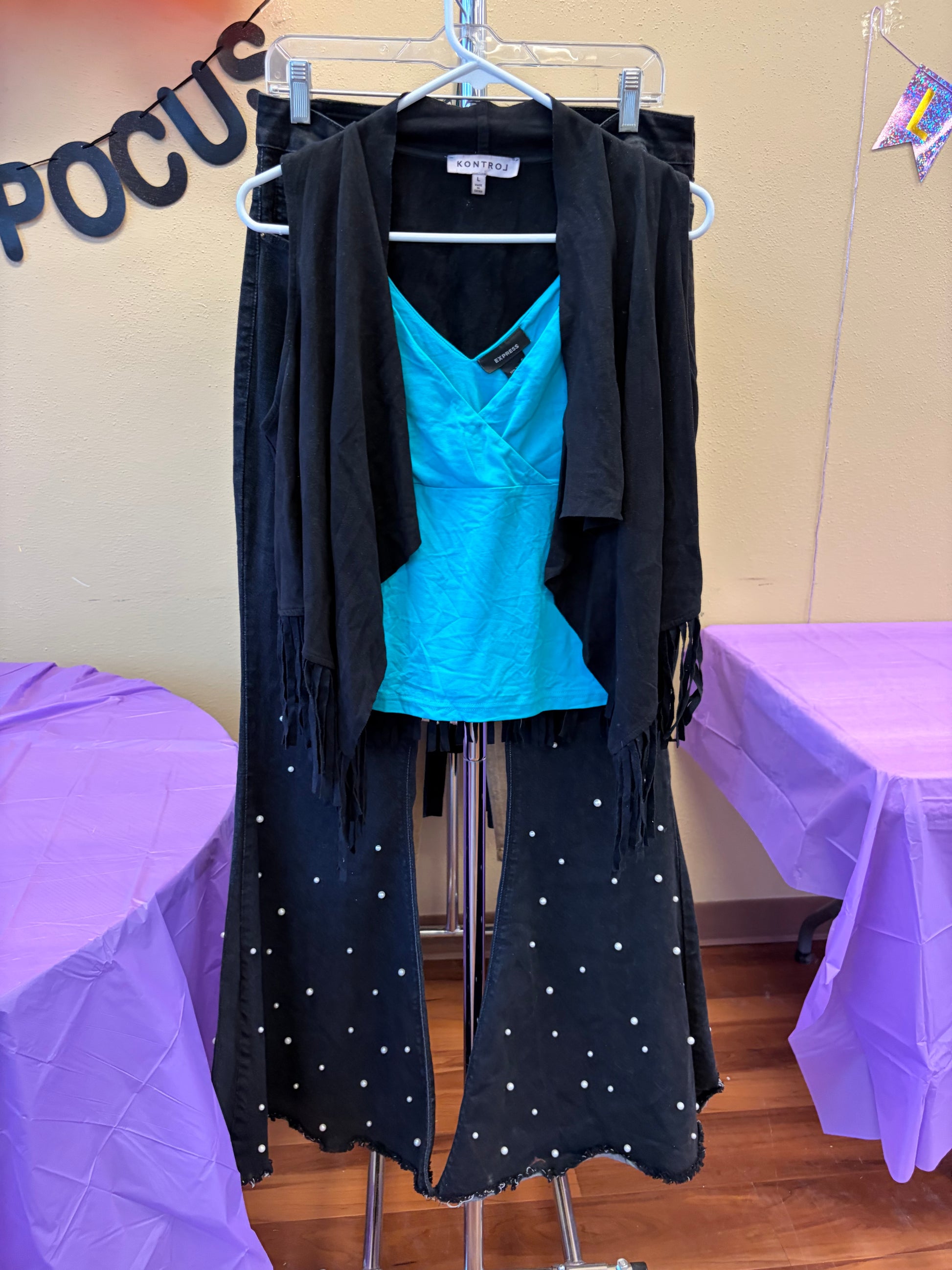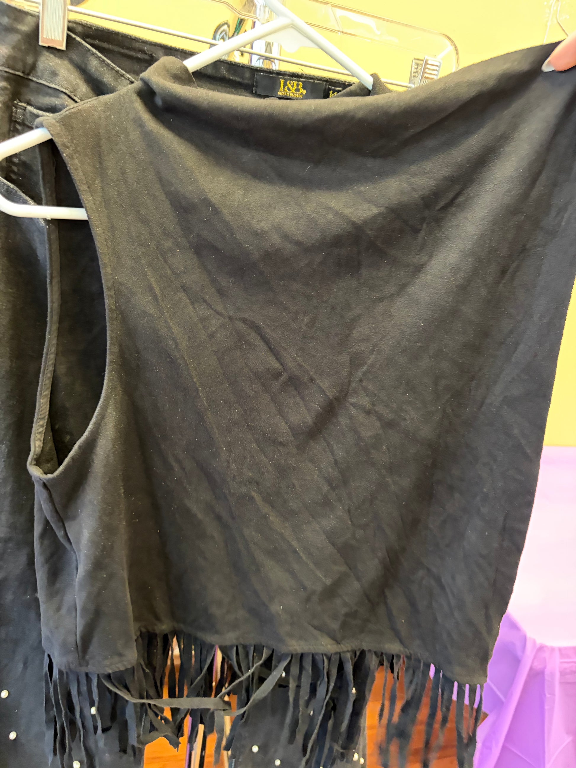 Black Fringe Vest - L